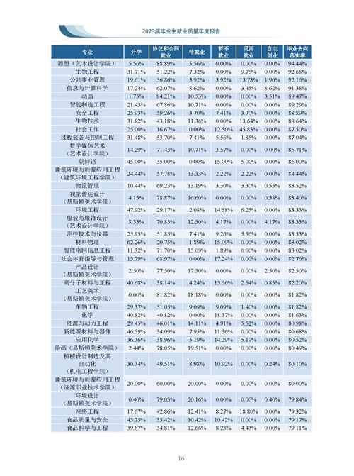 郑州轻工业大学是河南省和国家烟草专卖局共建高校,设置有烟草相关专业如烟草、烟草科学与工程、香料香精技术与工程。从2023届本科生各专业就业率表中可见,物理类录取分数较高的计算机科学与技术专业就业数据并不理想,约45%的毕业生在毕业季未能落实升学或协议就业,烟草专业升学率数据超过40%,就业数据略高于学校平均水平,可见本科生想进烟草行业的难度不小。历史类汉语国际教育专业录取分数不高,但是就业率数据排名各专业第一,录取分数垫底的公共事业管理专业就业率数据排名靠前。