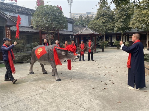 每年立春时节,双流都要举行“打春牛”活动。“今年已经是第七届了,由于受到疫情影响,我们选择了在小范围内开展。”成都文清农耕文化博物馆馆长赵文清介绍,今年打春牛活动通过提前现场录制、当天网络播放的形式,让人们隔着屏幕感受立春的仪式感和满满的春意。