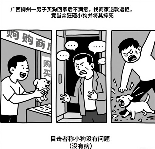 近日,广西柳州一则令人痛心疾首的新闻闯入公众视野:一名男子买狗回家后,因不满欲找商家退款被拒,竟在众目睽睽之下,狂砸小狗并将其残忍摔死。这一事件,如同一颗巨石投入平静湖面,激起千层浪,引发了社会各界的强烈谴责与深刻反思。