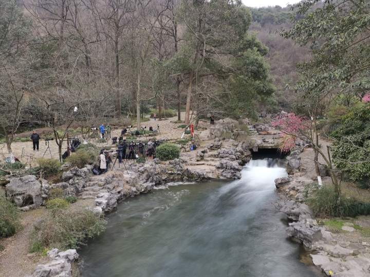 今天(2月17日),瀑布水系对面的空地上,被长枪短炮占满了,这几株开放的山樱已成妥妥的C位。