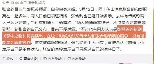 真相来了!张含韵否认与彭冠英领证结婚,彭冠英的做法惹争议