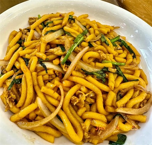 炒叉子是丹东特色美食,是选用玉米面粉为原料制作的米叉子,其做饭是先将米叉子煮到七八成熟后在加入各种配料炒制,其特点是:口感丰富,味道鲜香。