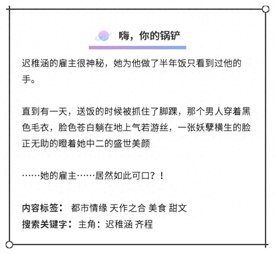 2、男主因为社恐,所以雇佣女主为家庭私厨,在相处中互生好感,进而互相治愈