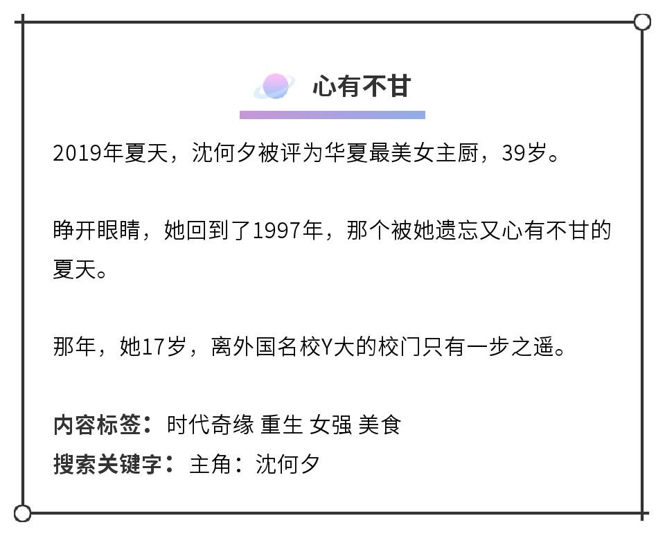 1、美食重生文,女主重生回17岁,自我救赎自我原谅的故事