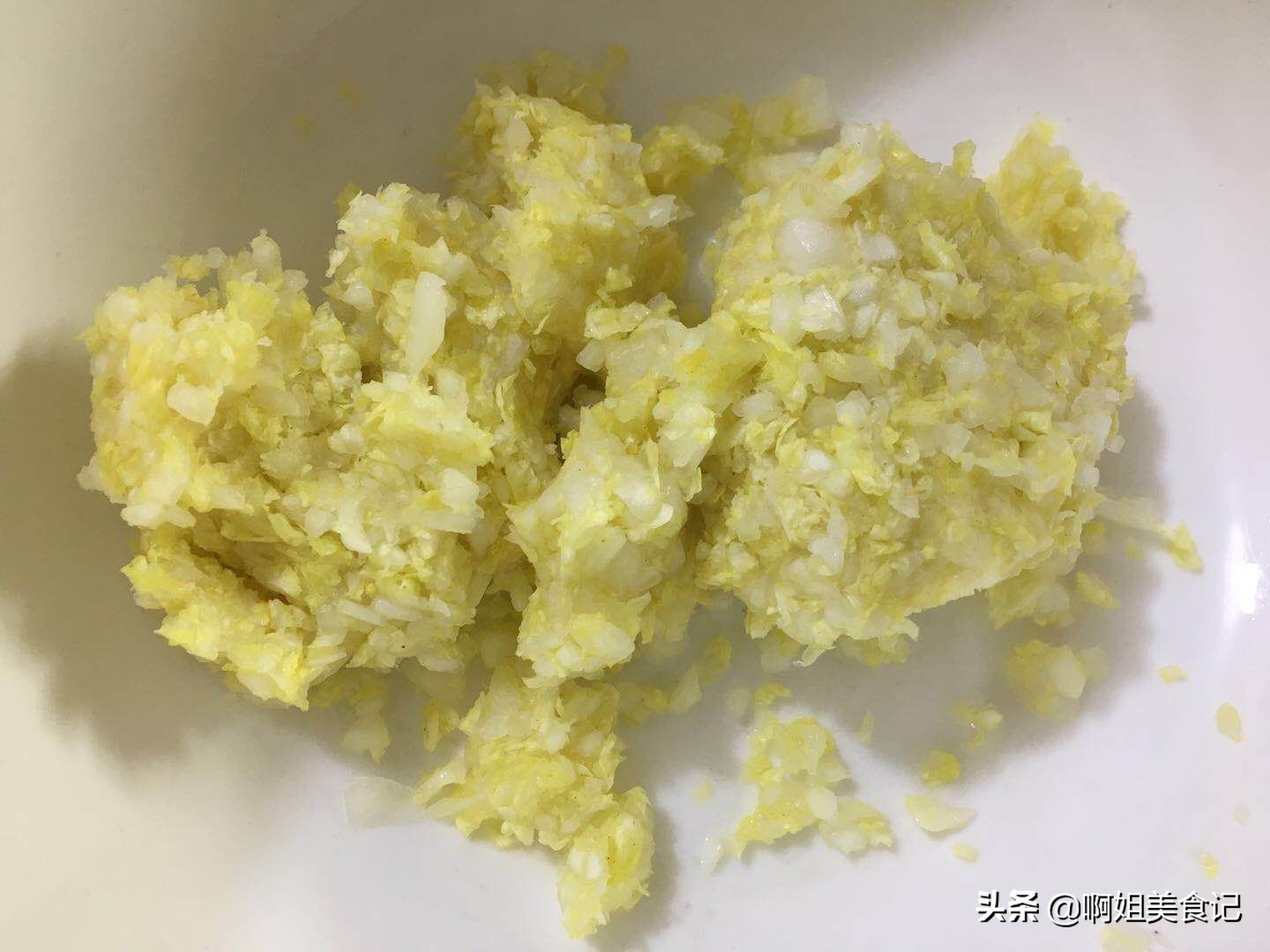 第一步:白菜洗净剁细,加一勺盐腌制15分钟后挤干水分,尽量把水分挤干。