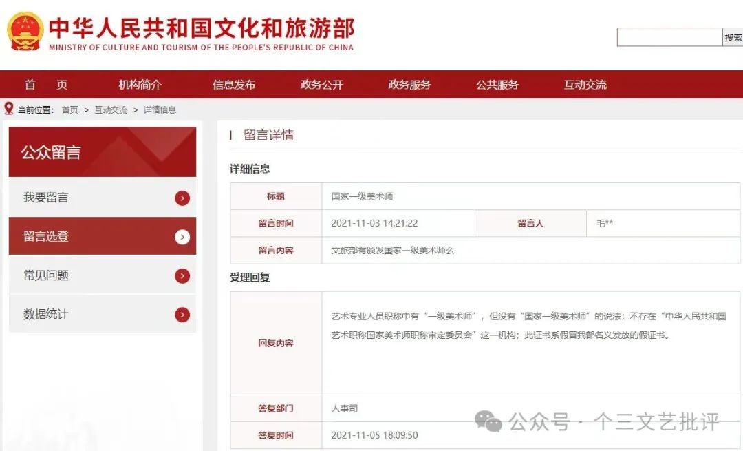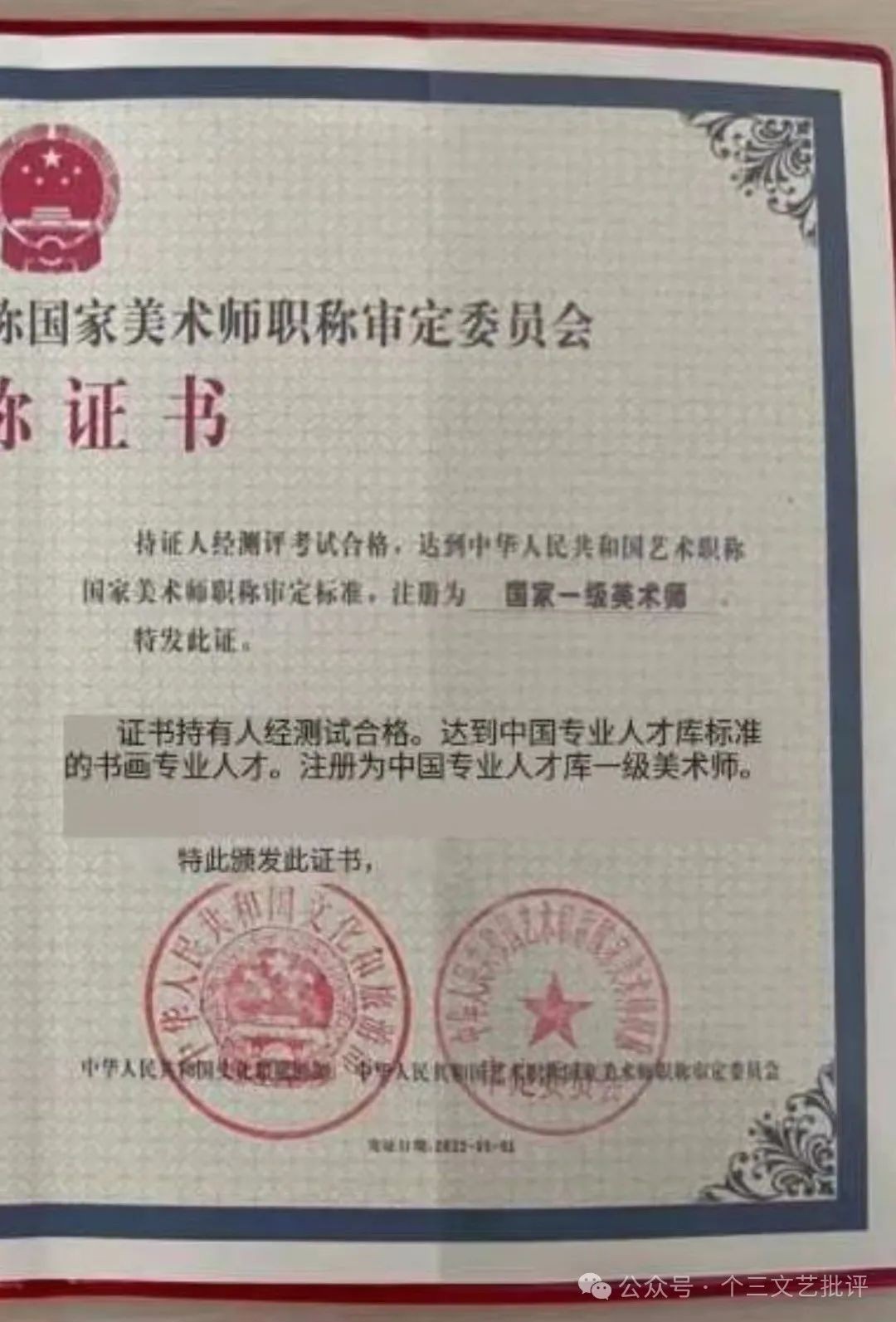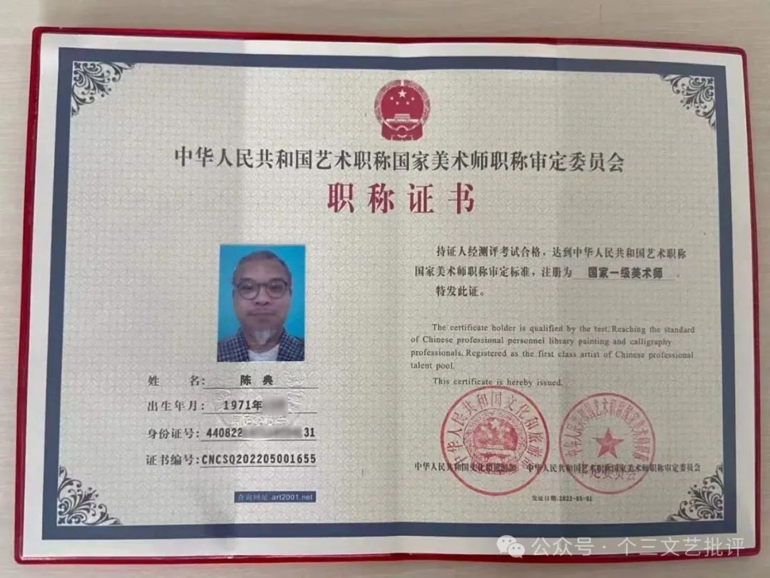 ▲陈典“国家一级美术师”证及相关部门答复(报料人提供)