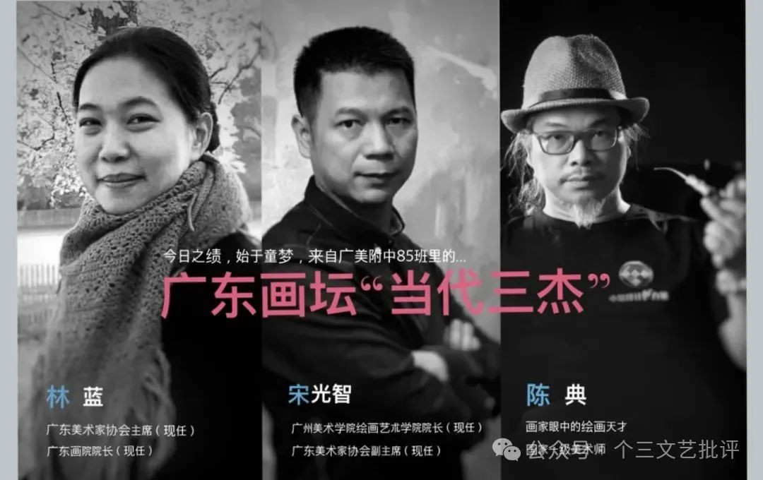 《广东画坛"当代三杰"》指林蓝、宋光智、陈典三人同为“广美附中85班”同学,“现一起被誉为广东美术界于‘行业、学术、社会’的三个板块中现时最具影响力的广东当代‘画坛三杰’”,其中广东省美协主席、广东画院院长、教授、博士生导师与全国人大代表林蓝于新近当选“中美协副主席”。