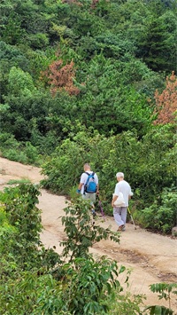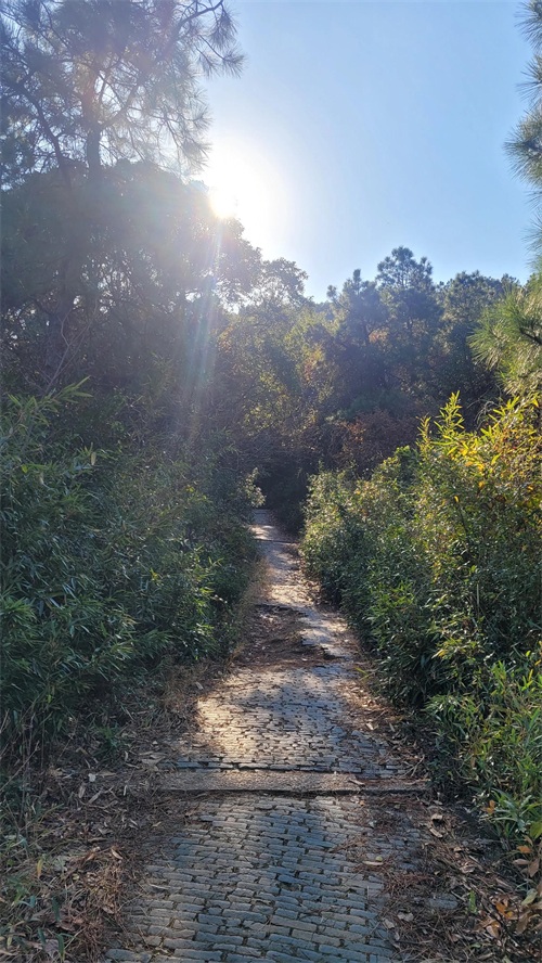 实际上,从灵岩山上山,至灵白线起点,在分岔路口往右面偏东方向还有一条下山线路,走的人不多。这是一条用砖石铺成的古道,古道有一定的历史年代了,路面已经破损不堪,但比较幽静。