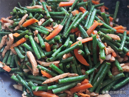 2、炒豇豆最好多放一些油,炒出来的比较好吃,如果中途加水口感会差一些,还有加水后切记不要盖盖子焖,那样豇豆就变色了。