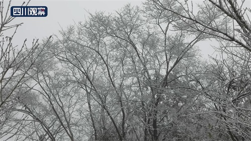 在海拔1704米的四川华蓥山旅游区,零下三度的气温寒意十足,云雾缭绕中的白雪若隐若现,雪花飘落在树木草丛中,将枝条树叶凝结成冰条,晶莹剔透。洁白的雪花与绿色的树木相映成趣,构成了一幅幅精美的山水画,千姿百态,形态各异。