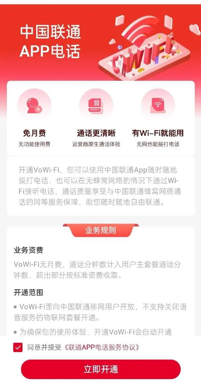 不过这“WiFi通话”小程序的推出,对咱们用户来说可是个大好事!在网友分享的联通Wi-Fi通话功能开通界面中,“有Wi-Fi就能用”、“通话更清晰”以及“免月费”是Wi-Fi通话的三大特点。
