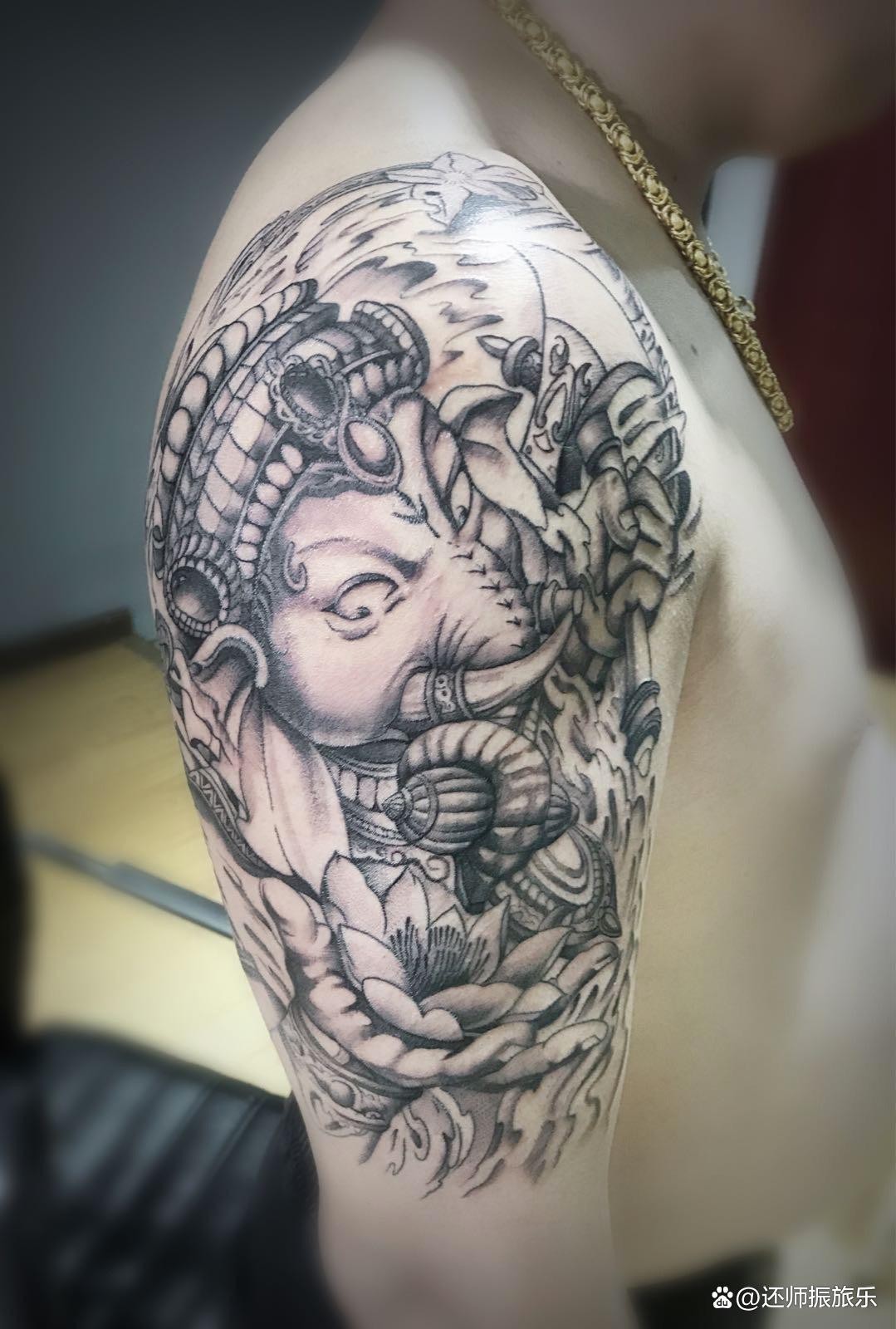 一、象征着力量和智慧 象神纹身的主要图案是象神的形象,通常是一个拥有大象头和人类身体的形象。大象头代表象神的智慧和力量,而人类身体则代表他的人性。在印度教和佛教中,象神被视为一位非常受人尊敬的神祇,他的形象代表着人类的力量和智慧。因此,许多人会在身体上纹上象神纹身,以表达他们的渴望力量和智慧的愿望。