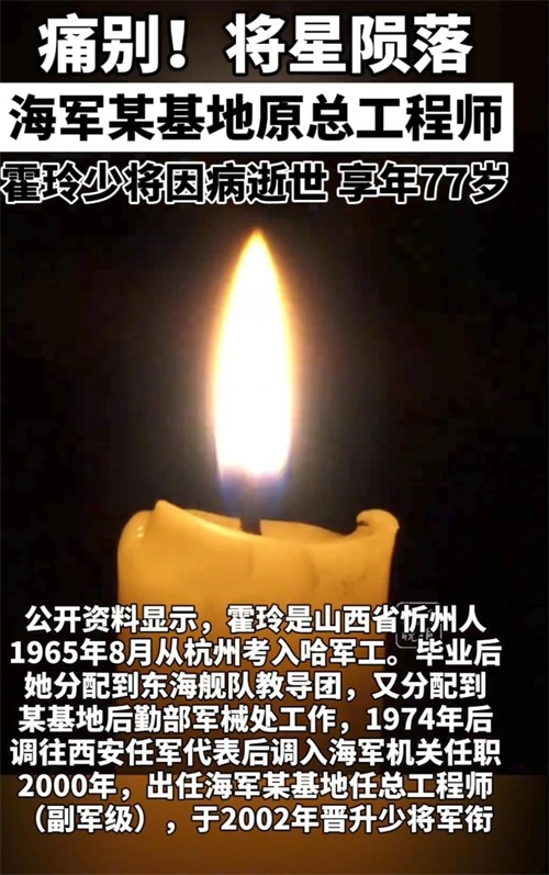 痛别!将星陨落!霍玲少将因病医治无效,与世长辞,享年77岁!