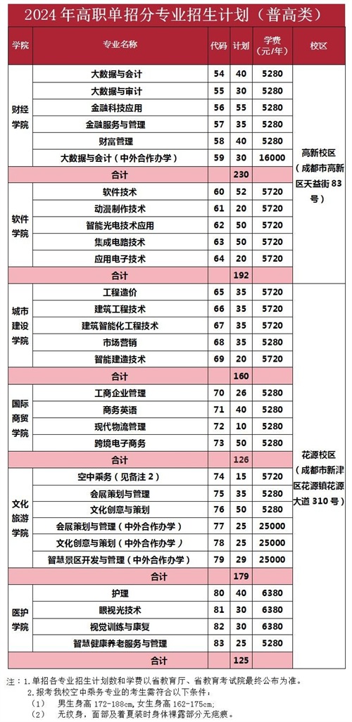 2024年成都职业技术学院高职单招计划表2024 年高职单招分专业招生计划(中职类)