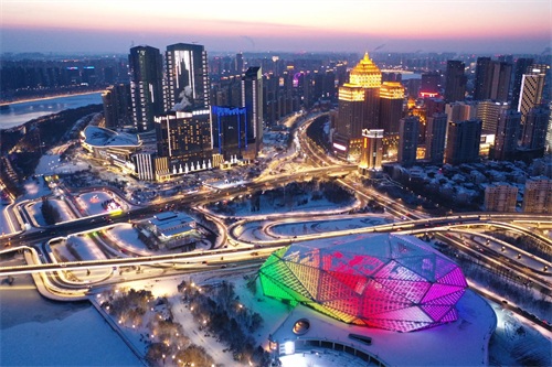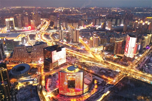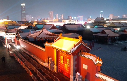 夜幕降临,沈阳的城市面貌在雪后焕然一新,高楼大厦在灯光的映衬下,犹如一颗颗璀璨的明珠,闪烁着迷人的光芒。尤其是沈阳的地标性建筑——盛京大剧院如钻石般的光芒变幻,仿佛在向每一个路过的人诉说着这座城市的辉煌与梦想。近年来,沈阳在城市建设上不断创新,致力于打造现代化、国际化的都市环境,吸引了无数游客和投资者的目光。