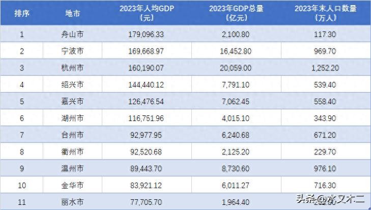 温州倒数第三,杭州难入前二!浙江各地2023年人均GDP排行出炉