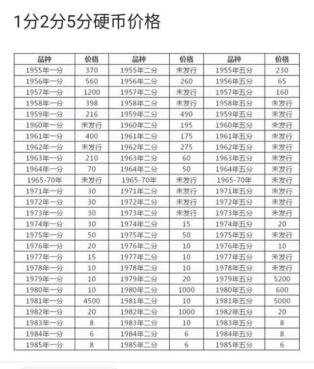 下面附“钢镚”发行年限,供收藏爱好者留存。(价格仅供参考)