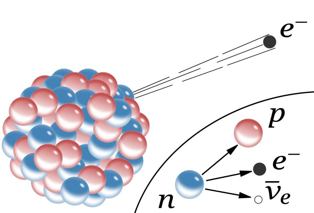 图八:最著名的弱相互作用反应:β衰变。图片来自维基百科