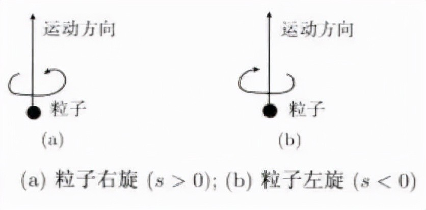 当粒子运动方向固定后,我们看到,粒子可以有两种不同的旋转方式:向“左“旋转和向“右“旋转,这两种旋转分别用左旋和右旋来标记,并在计算的时候用正表示右旋,负表示左旋。多数基本粒子都有左右两种不同的自旋取值,例如电子、质子和中子的自旋: