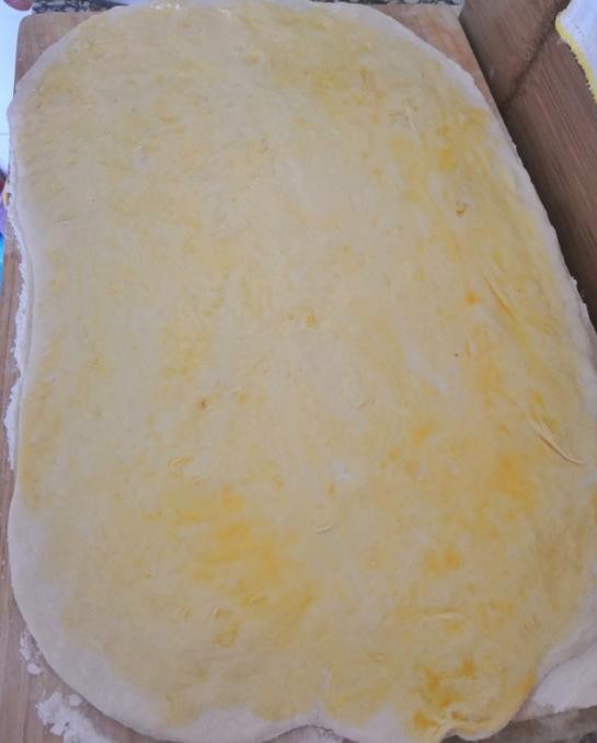 第四步:醒好的面整理成片状,刷一层薄油,撒少许盐。
