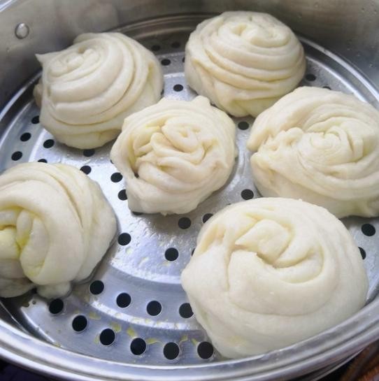 第七步:整理好的花卷醒20分钟,上屉蒸15分钟,注意上屉前把蒸屉先预热好。