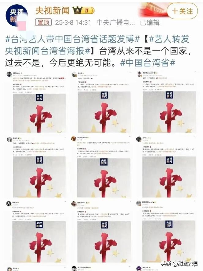 2025 年 3 月 8 日,央视新闻官媒转发了十八位湾省艺人的微博截图,这事儿可真是把娱乐圈搅得热闹非凡。