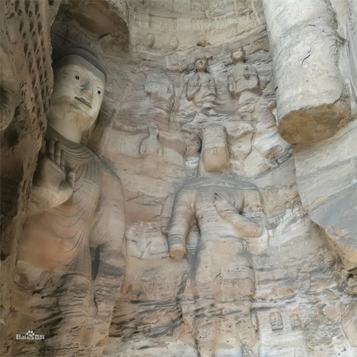 云冈石窟位于山西省大同市城西约16公里的武州山南麓、武州川的北岸,石窟依山开凿,东西绵延约1公里。存有主要洞窟45个,大小窟龛252个,石雕造像51000余躯,为中国规模最大的古代石窟群之一。