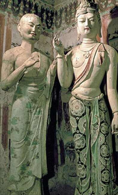 莫高窟,俗称千佛洞,坐落在河西走廊西端的敦煌。它始建于前秦宣昭帝苻坚时期,后历经北朝、隋朝、唐朝、五代十国、西夏、元朝等历代的兴建,形成巨大的规模,有洞窟735个,壁画4.5万平方米、泥质彩塑2415尊,是世界上现存规模最大、内容最丰富的佛教艺术地。