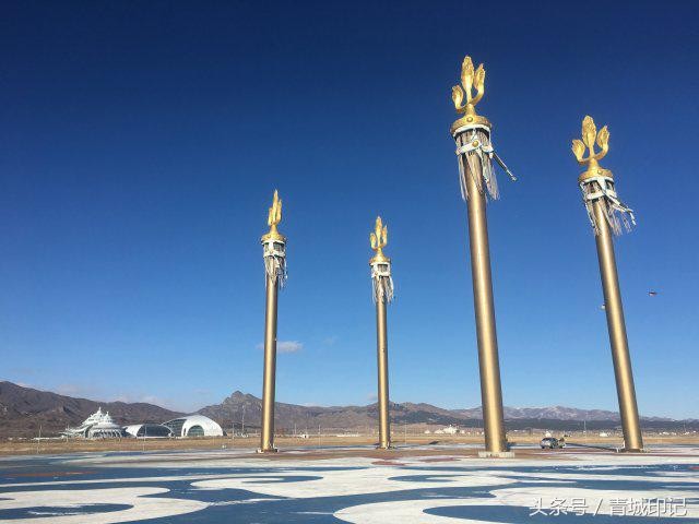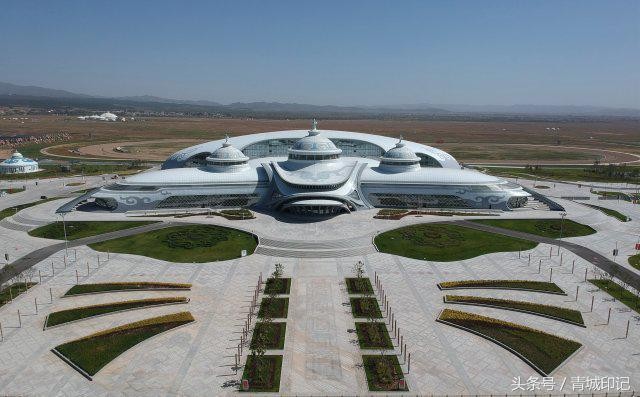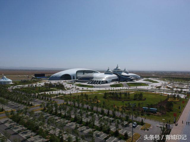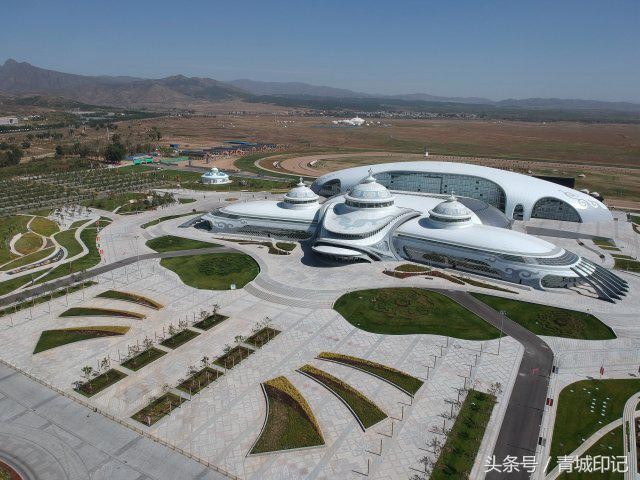 蒙古包以及马鞍造型的主建筑,建造在呼和塔拉这一小草原的中心,彩色的柏油路从四方通向中央。