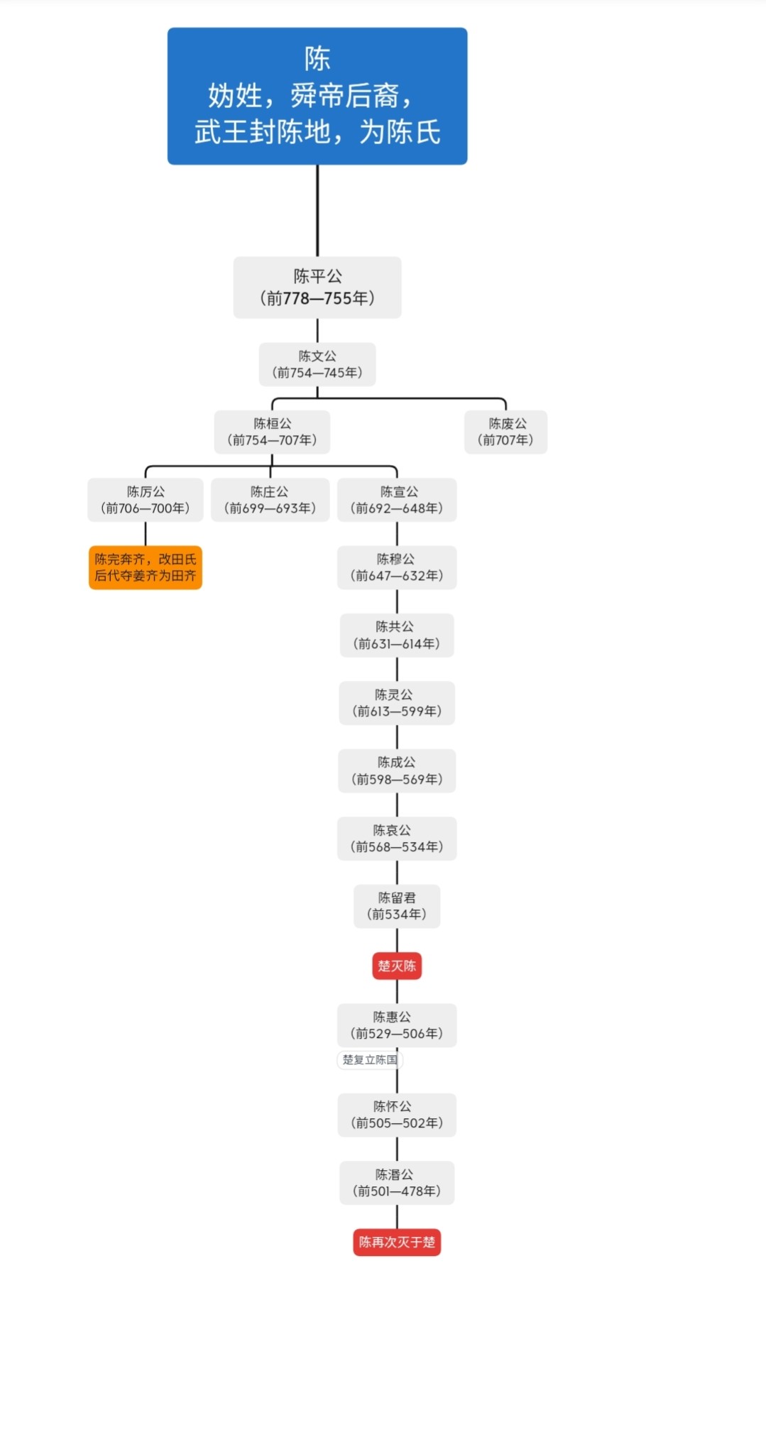 陈国:妫(读归)姓,舜帝后裔,武王封于陈地,后以陈为氏。