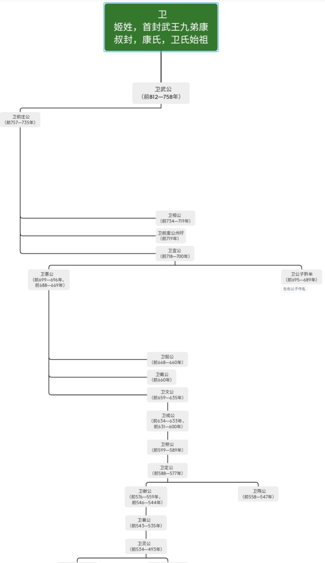 卫国:始封武王九弟康叔封,后世子孙有康氏,卫氏。