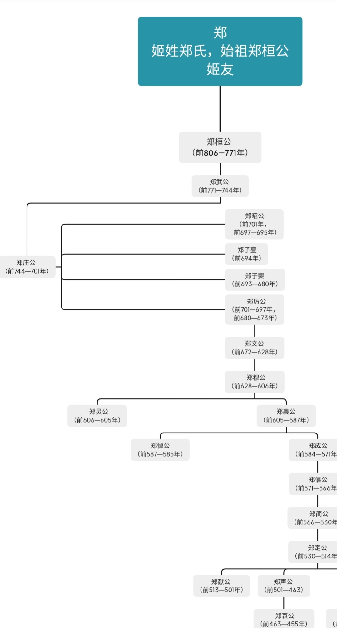 郑国:姬姓郑氏,始祖为郑桓公姬友,西周末年周厉王少子,周宣王异母弟,周幽王叔。