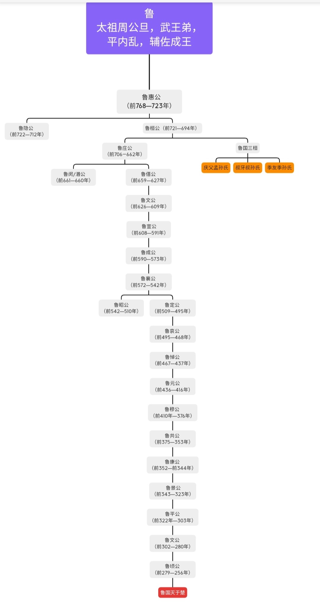鲁国:武王封给其弟周公旦,周公后为周王卿士,辅佐武王子周成王,平三监之乱。