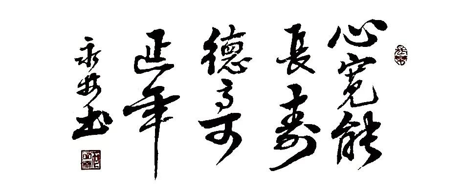 落款:心宽能长寿 德高可延年 永林书(钤印)