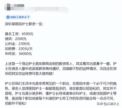 一个帖子爆出来深圳护士的收入水平:
