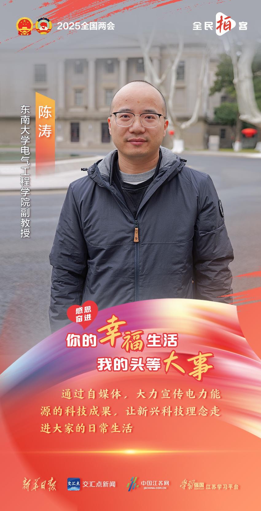 “对我来说,过去一年的‘头等大事’就是做好科普工作。”陈涛介绍,2024 年,他创立了“涛哥能源猩球”自媒体,依托东南大学电气工程学院,做电力能源类的科普宣传和行业政策解读,把这座知识富矿里的一个又一个专业知识通过“热点新闻”与公众进行连接。