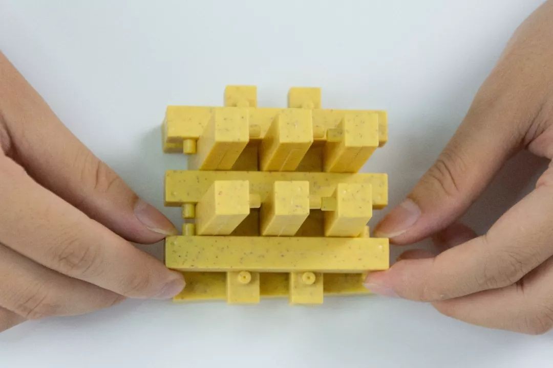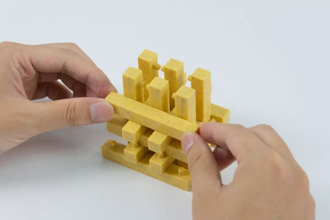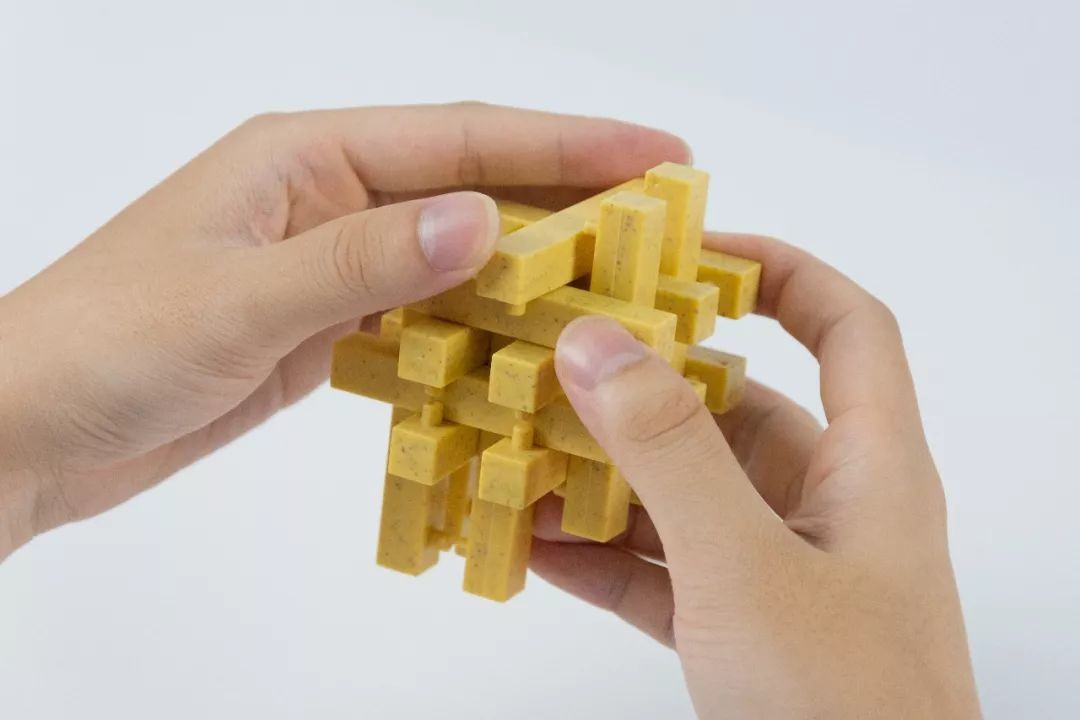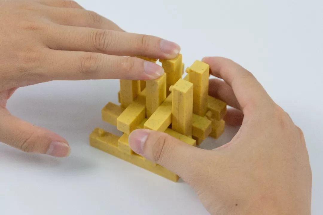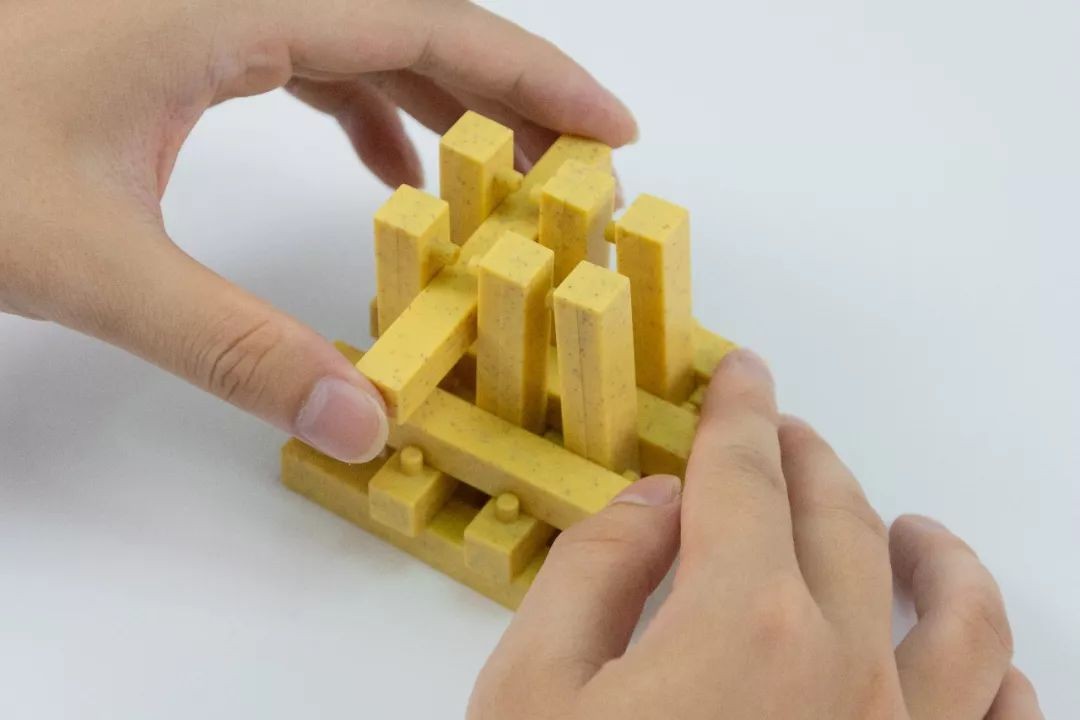 继续用孔明锁的部件按缝隙插入搭建