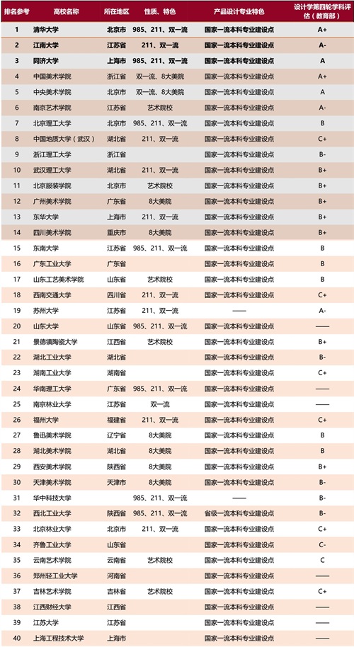 产品设计专业较强的大学排名: