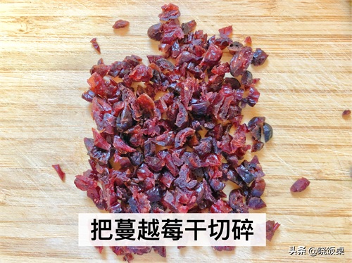 1、把准备好的蔓越莓干切碎备用。
