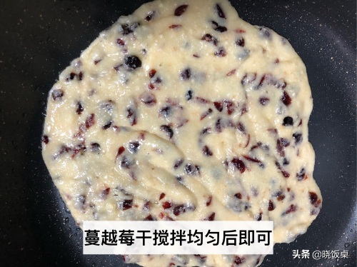 7、蔓越莓干放入锅中后需要再次搅拌均匀。