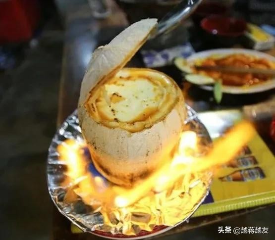 除了以上用椰子做的美食甜品外,越南人也会将喝完汁的椰肉挖出来,和鲜嫩的鸡肉一起做成清甜可口的椰子鸡或者是椰子鸡汤,这两菜是越南人过重大节日作为团圆饭的必备菜,这两道菜的特点在于椰子的清香与鸡肉的鲜美相互渗透,形成了一种独特的风味。