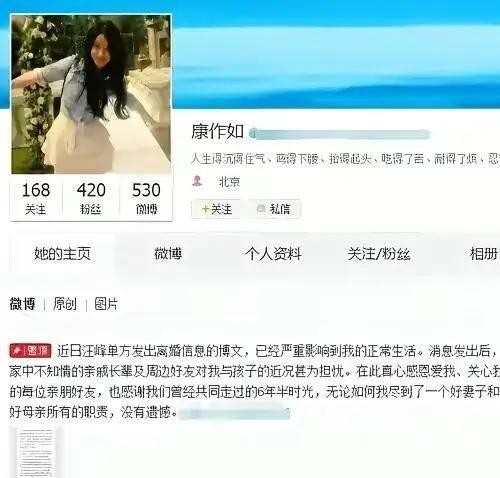 曾经有一个名叫康作如的女人在网上控诉自己被汪峰抛弃,并且指控对方在感情和婚姻方面不忠。