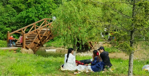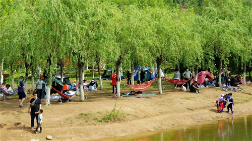 大家想法都和我一样,园内游人如织,很多都是搭起帐篷、挂起吊床、铺好防潮垫,准备在这里消磨一天的。孩子们自然是开心,也有不少学生,聚在树下野餐、打牌,我们那个年代似乎没这么会玩儿。