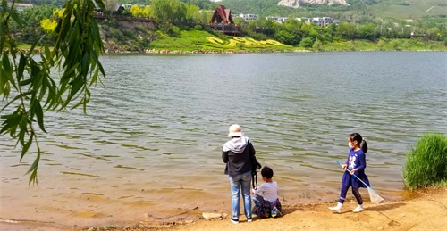 湖中有很多小鱼小虾,捞鱼是主要休闲活动之一,这对母子收获不小。