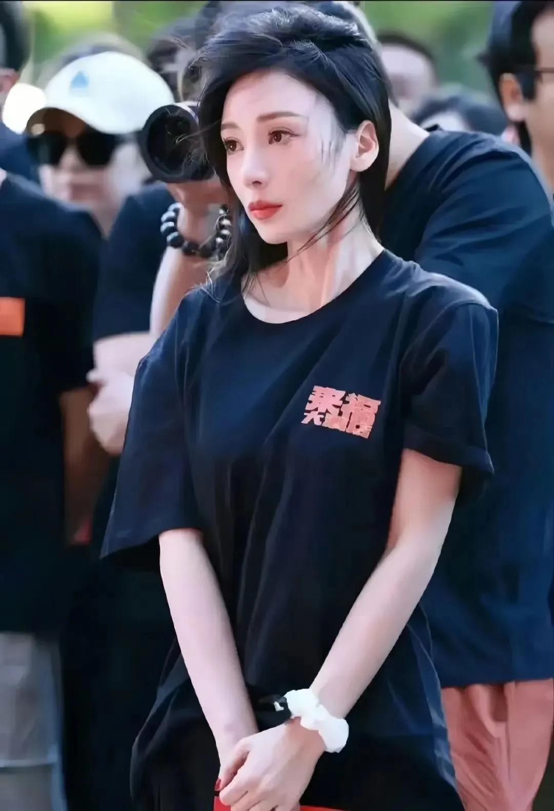 穿着一件的黑色T恤,简简单单反而让她更耀眼,增添了一份成熟的魅力。