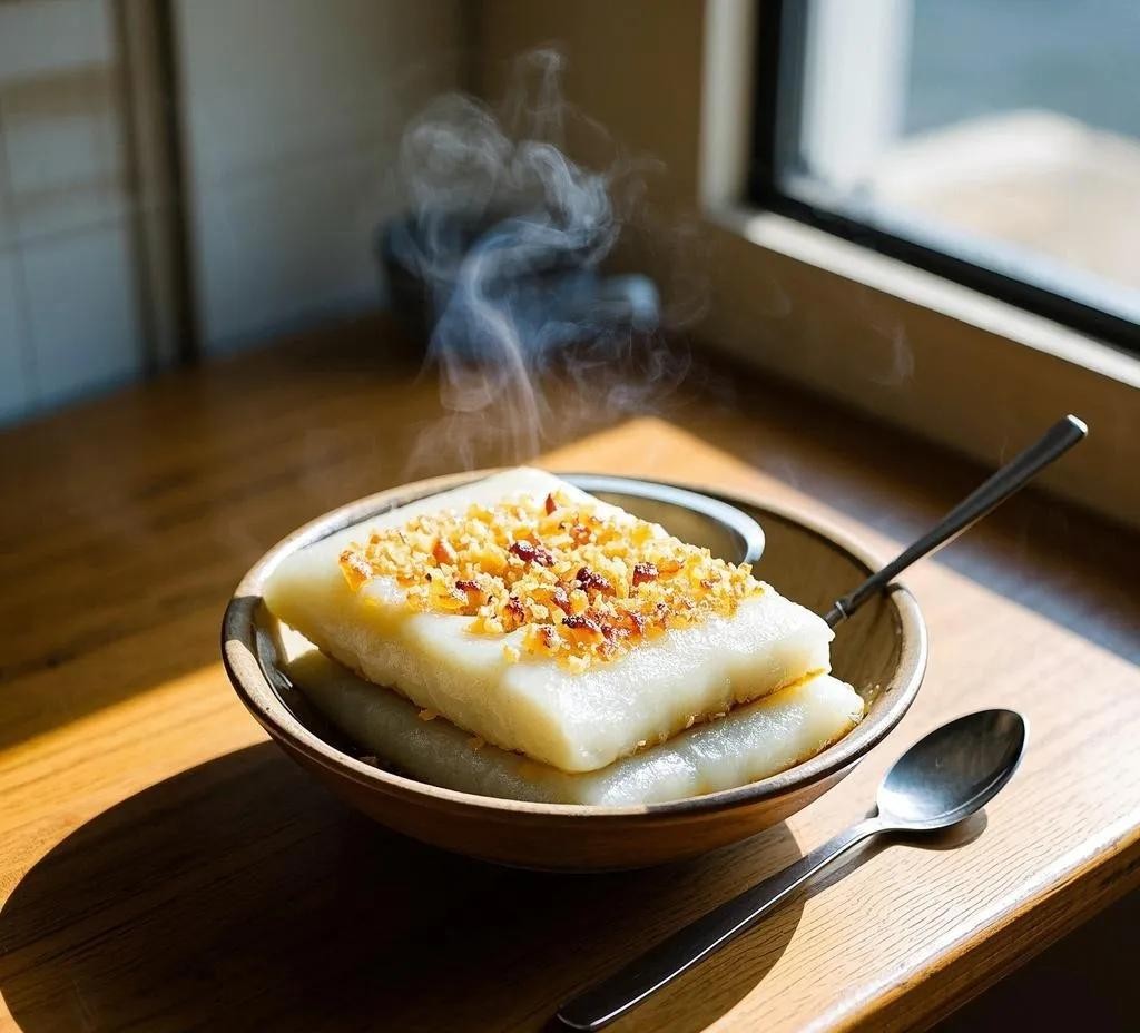 将米浆倒入竹簸箕中,摊平,放入蒸笼蒸熟。待冷却后,用刀切成菱形小块,再撒上一层特制的芝麻粉、花生碎和香油。吃的时候,用竹签挑起一块,放入口中,米浆的软糯与芝麻、花生的香气相互交织,口感细腻,香甜可口。