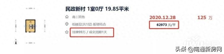 前段时间,南通市区一间仅有19.85㎡的“迷你”房,成交单价62973元/㎡,震惊了很多人,虽然125万的总价不高,但这个单价也是让很多人望而却步。