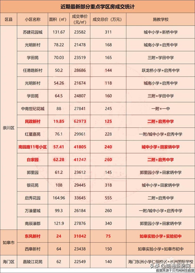 那么南通最近的热点学区房成交又是如何呢?