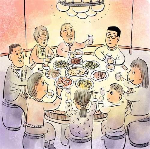 吃年夜饭:年夜饭,又称年晚饭、团圆饭,是指在岁末除夕的时候,家人们团聚在一起聚餐。年夜饭是年前的重头戏,不仅菜肴丰富,而且寓意深重,吃年夜饭之前,要先拜神祭祖,仪式完毕后才可以开饭。