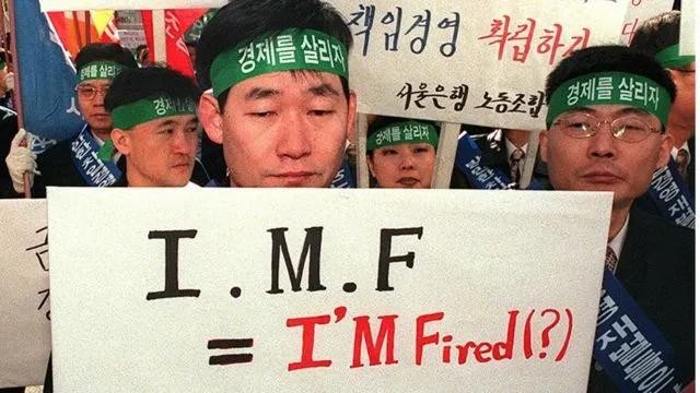 正在抗议IMF援助的韩国民众